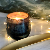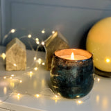 Photophore en verre teinté à joli relief quadrillé de couleur bleu-gris. Il ira parfaitement dans votre intérieur aussi bien en été qu'en hiver.